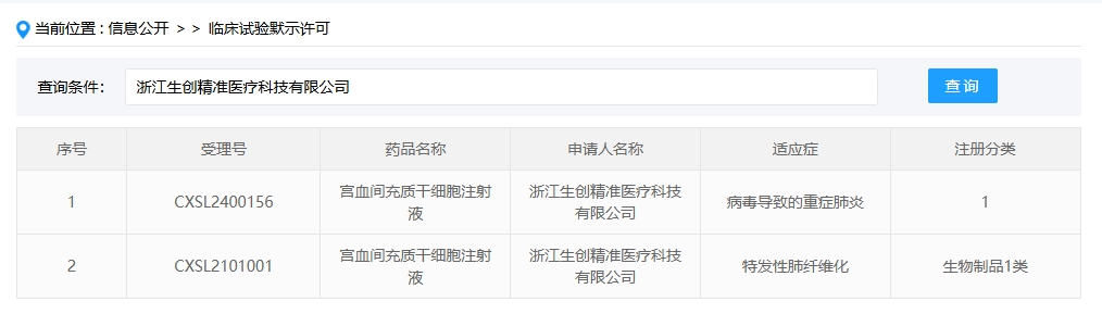 其中該款細(xì)胞注射液)獲得新藥臨床試驗(yàn)?zāi)驹S可,適應(yīng)癥分別是:特發(fā)性肺纖維化,病毒導(dǎo)致的重癥肺炎