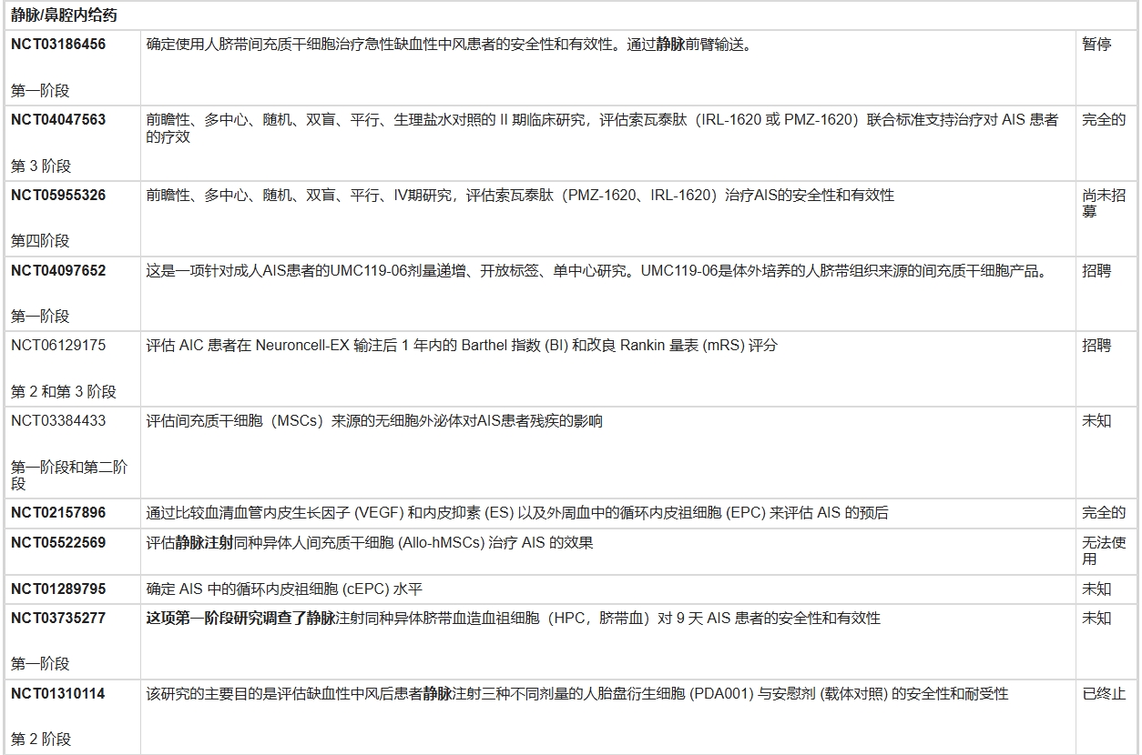 表3:從國(guó)家臨床試驗(yàn)網(wǎng)站提取的干細(xì)胞治療急性缺血性卒中 (AIS) 試驗(yàn)