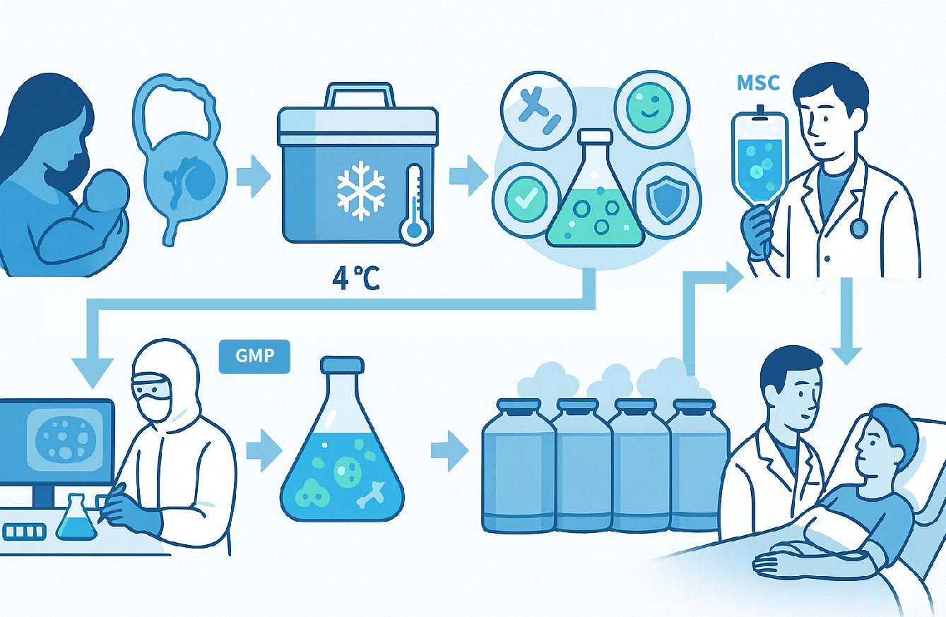 一份胎盤或臍帶是如何轉(zhuǎn)變成符合臨床使用標(biāo)準(zhǔn)的干細(xì)胞藥品?主要包括以下關(guān)鍵環(huán)節(jié):