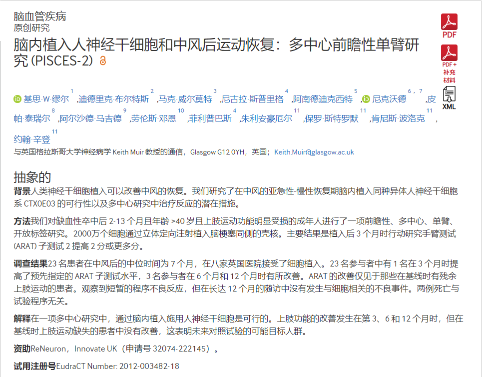 同種異體 HNSC CTX0E032 × 10 7The putamen23在基線時有殘余上肢運動的患者中發(fā)現(xiàn)運動功能有所改善。安全的2020