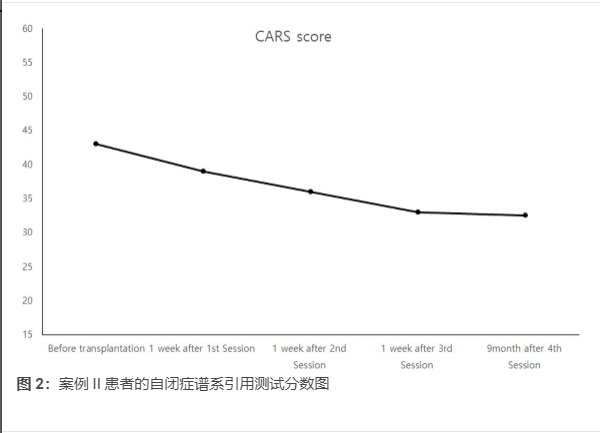 2019年11月至2020年1月進(jìn)行臨床治療,選擇兒童自閉癥評(píng)定量表(CARS)評(píng)分>60分的兒童2例。從臍帶中分離出間充質(zhì)干細(xì)胞。注射用細(xì)胞數(shù)為1×106/kg。該程序每周重復(fù)4~6次。