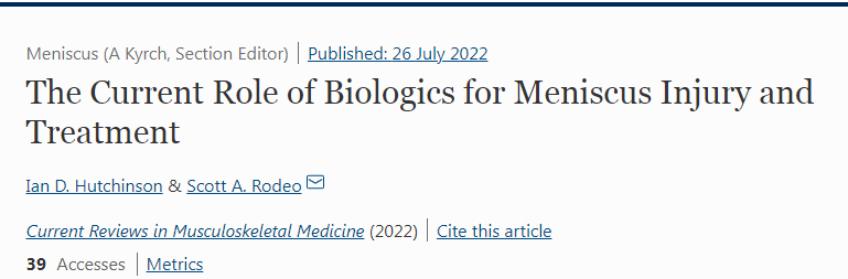近年來,利用包括干細胞在內(nèi)的生物制劑來治療半月板損傷的研究越來越常見。2022年6月,科學家在《Current Reviews in Musculoskeletal Medicine》提出,生物制劑有望提升半月板損傷術(shù)后的修復和愈合速度,并且在實驗室研究階段已經(jīng)取得重大突破。