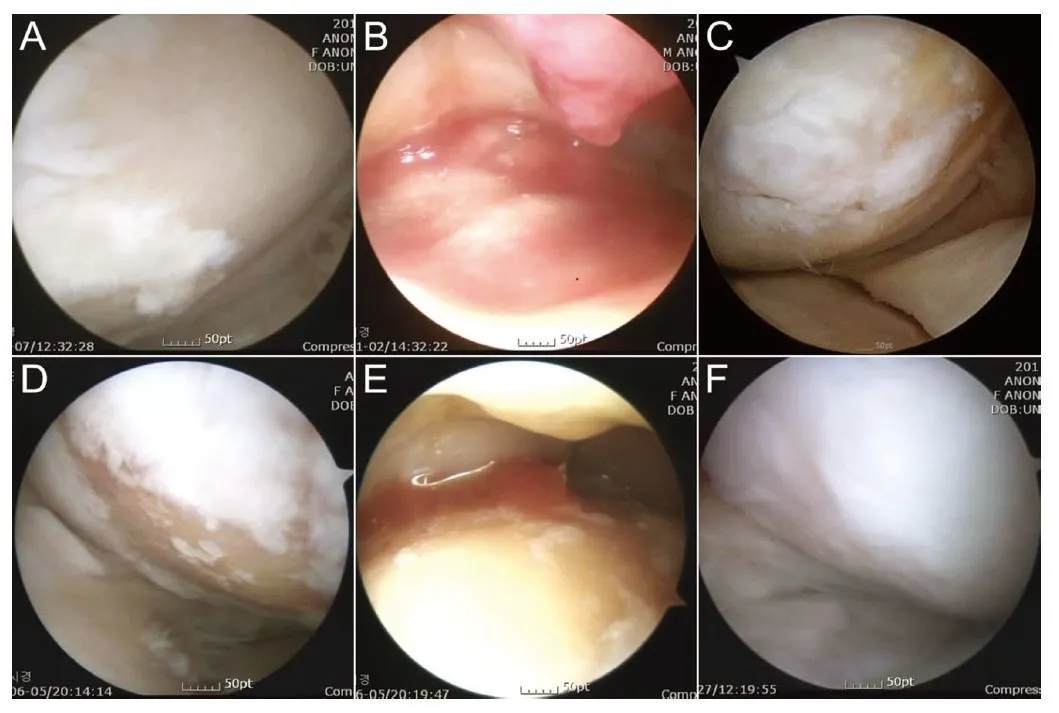 ▲圖中A-C為51歲男性膝關(guān)節(jié)鏡,D-F為54歲女性膝關(guān)節(jié)鏡。