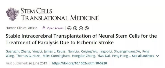 目前該研究課題進(jìn)展順利,值得一提的是,該臨床研究團(tuán)隊(duì)關(guān)于神經(jīng)干細(xì)胞治療缺血性腦卒中的Ⅰ期臨床研究結(jié)果,已經(jīng)于2019年6月26日發(fā)表在《干細(xì)胞轉(zhuǎn)化醫(yī)學(xué)》國(guó)際期刊上。Ⅰ期臨床研究結(jié)果反響良好,顯示出一種特殊的人源神經(jīng)干細(xì)胞系對(duì)于偏癱性中風(fēng)(身體的一側(cè)無(wú)力或癱瘓)后運(yùn)動(dòng)功能恢復(fù)的治療潛力。