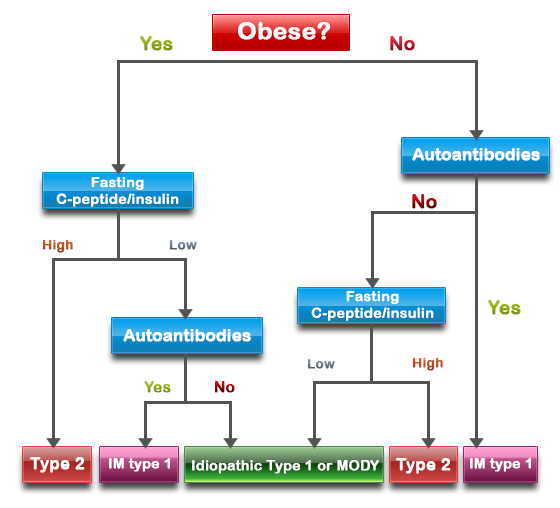 以下流程圖顯示了如何進行測試來區(qū)分不同類型的糖尿病。