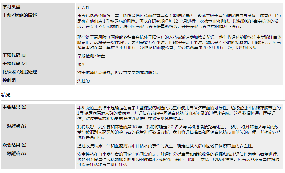 澳大利亞的一項(xiàng)研究正在招募1至12歲的兒童,以了解重新輸注自己的臍帶血是否有助于預(yù)防I型糖尿病風(fēng)險增加的兒童。