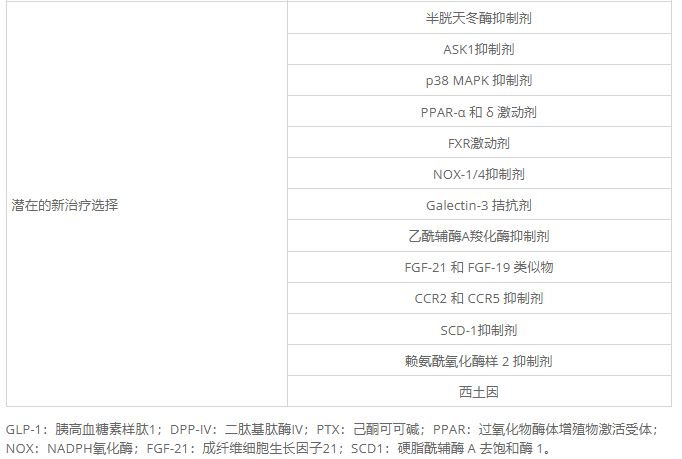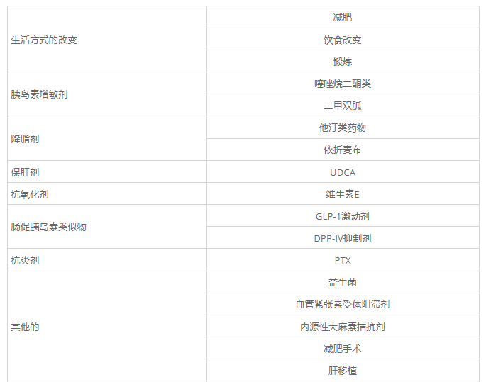 表2:非酒精性脂肪肝和非酒精性脂肪性肝炎的治療方案。