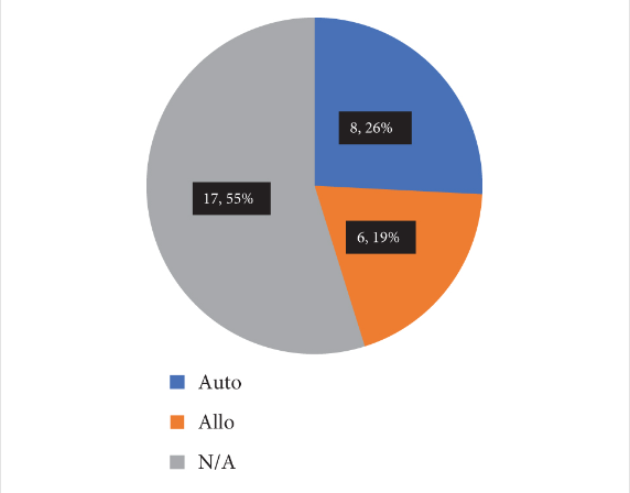 31例中,17例(54.8%)不清楚使用的是同種異體細(xì)胞還是自體細(xì)胞。然而,結(jié)果仍然表明與之前報(bào)道的頻率相比,同種異體MSCs治療的頻率有所增加。
