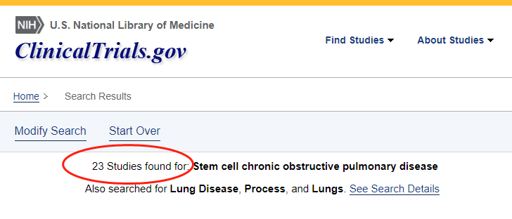 截止目前,國際上在clinicaltrials.gov系統(tǒng)中注冊的干細胞治療慢性阻塞性肺疾病的臨床研究項目有23個,其中9項顯示已完成(complete)。?