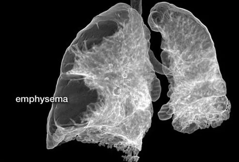 肺氣腫是一種肺部疾病。在肺氣腫中,肺泡(肺中促進二氧化碳和氧氣交換的小氣囊)受損并死亡。二氧化碳和氧氣沒有交換,最終肺泡死亡,在肺部留下空洞,導(dǎo)致肺組織丟失和 COPD 癥狀加重。肺氣腫的癥狀通常包括呼吸急促,有時還包括咳嗽和喘息。肺氣腫的治療可能包括支氣管擴張藥物、類固醇、抗生素和氧氣。強烈建議戒煙。