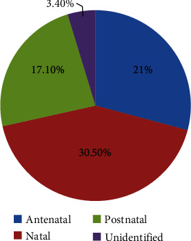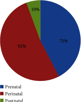 現在眾所周知,CP的主要危險因素是37周前分娩和出生體重低于2.5公斤;然而,還有一些其他問題在文獻中被發(fā)現是腦損傷的一些突出原因,其中一些包括發(fā)育期大腦畸形、遺傳原因、子宮內母親和胎兒感染以及各種其他問題??赡苁拱l(fā)育中的大腦容易受傷的因素分為孕前、懷孕期間和出生后出現的風險因素。一項研究證實,母親受孕前的健康狀況是影響胎兒中樞神經系統(tǒng)的原因之一,在妊娠后期可能會導致腦癱。本研究將孕前定義為母親受孕前的健康狀況,產前定義為妊娠期,圍產期為分娩時,產后為分娩后。