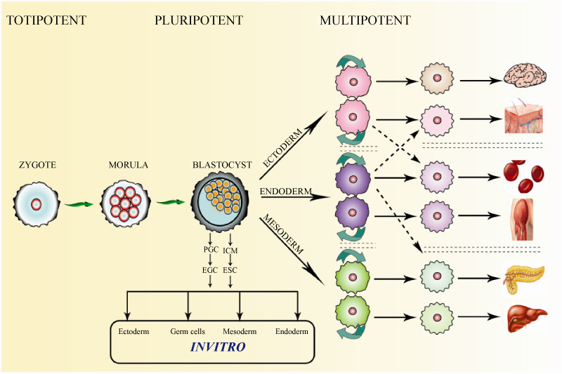 干細(xì)胞被認(rèn)為是細(xì)胞的組成部分。體內(nèi)所有特化細(xì)胞都來(lái)自干細(xì)胞。當(dāng)干細(xì)胞分裂時(shí),它們要么產(chǎn)生更多的干細(xì)胞,稱為子細(xì)胞,要么分化成專門的細(xì)胞,如骨骼、血液或腦細(xì)胞。