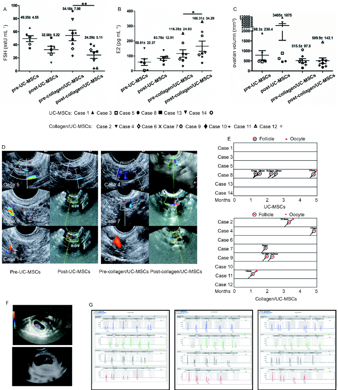 南京大學(xué)醫(yī)學(xué)院附屬鼓樓醫(yī)院在臍帶間充質(zhì)干細胞復(fù)合膠原卵巢移植的方式治療卵巢早衰所致的不孕癥的研究結(jié)果表明:膠原/臍帶間充質(zhì)干細胞移植能夠改善患者的卵泡活化和卵泡生長,并有助于卵巢功能的長期恢復(fù),包括卵巢血流和雌二醇水平。而且,有2例患者在移植后成功受孕。