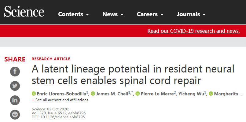 2020年,瑞典Karolinska研究所在《科學(xué)》雜志上發(fā)表的一項(xiàng)新研究顯示干細(xì)胞可以幫助損傷后的脊髓修復(fù)[1],證明了刺激小鼠脊髓中干細(xì)胞形成大量新的、神經(jīng)元傳遞信號所必須的少突膠質(zhì)細(xì)胞,可以幫助修復(fù)受傷后的脊髓。