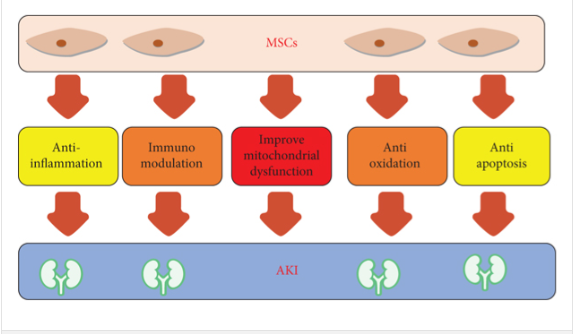 間充質(zhì)干細(xì)胞 (MSC) 療法被認(rèn)為在治療AKI方面具有巨大的治療前景,并且已在多種AKI動(dòng)物模型中顯示出有益的治療效果。
