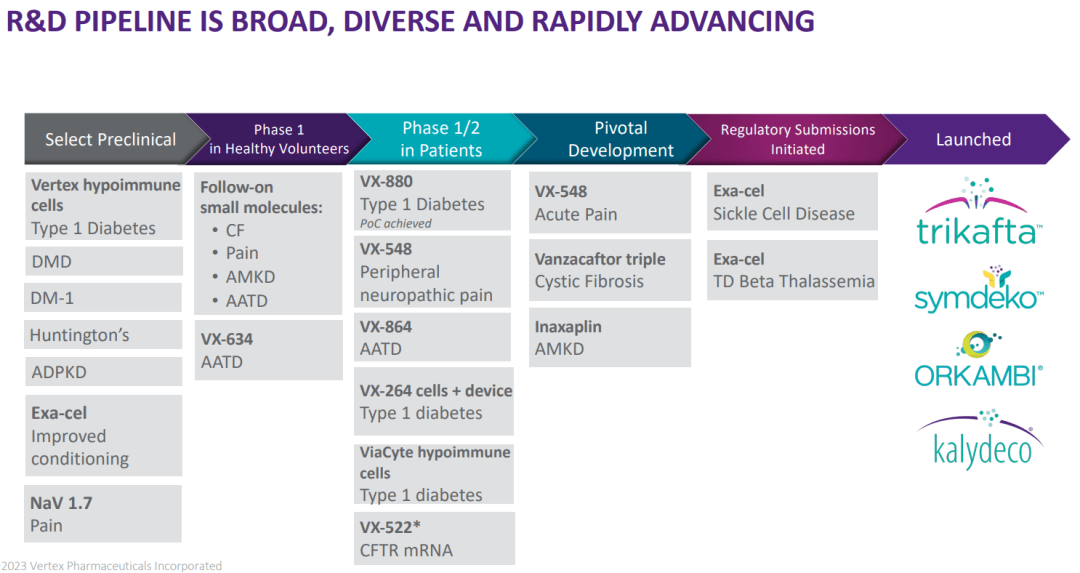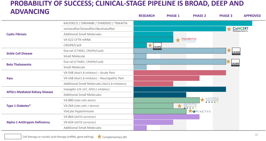 目前,Vertex除了1型糖尿病等自身免疫疾病產(chǎn)品外,其適應(yīng)癥覆蓋甚廣,在杜氏肌營(yíng)養(yǎng)不良癥(DMD)、肺囊性纖維化(CF)以及肺部和肝臟疾病等領(lǐng)域均有布局。而Vertex與CRISPR合作的全球首款CRISPR基因編輯療法exa-cel已經(jīng)上市在即,Vertex近期引起了不少關(guān)注,其最近動(dòng)態(tài)也不可謂不頻繁。在3月1日,Vertex還與ImmunoGen達(dá)成了一項(xiàng)全球多目標(biāo)許可和期權(quán)協(xié)議,ImmunoGen授予Vertex使用其ADC技術(shù)進(jìn)行研究的權(quán)利,以發(fā)現(xiàn)用于基因編輯的新型靶向調(diào)節(jié)劑。結(jié)合近期的動(dòng)態(tài)來(lái)看,Vertex在完善CRISPR基因療法領(lǐng)域的布局的同時(shí),似乎也在嘗試進(jìn)軍其他領(lǐng)域管線(xiàn)廣泛覆蓋了基因療法、mRNA、tRNA甚至是ADC藥物。