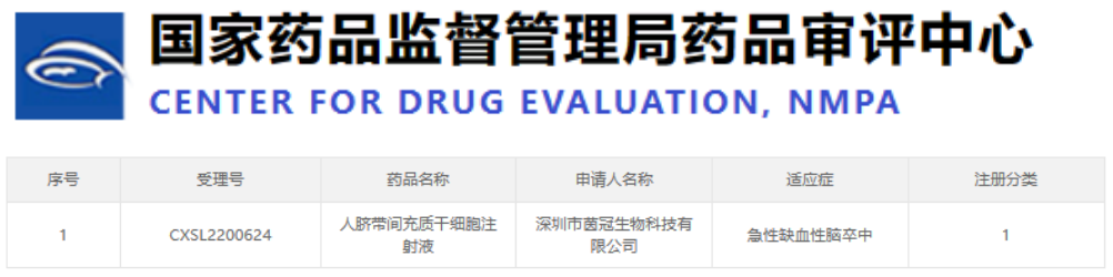 深圳市茵冠生物科技有限公司的人臍帶間充質(zhì)干細(xì)胞注射液,已于2023年3月21日獲得國(guó)家藥監(jiān)局藥品審評(píng)中心(CDE)的臨床試驗(yàn)許可。