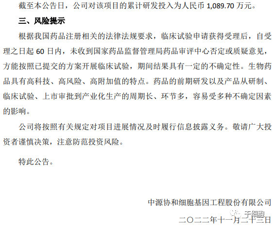 特此公告。中源協(xié)和細(xì)胞基因工程股份有限公司二○二二年十一月二十三日