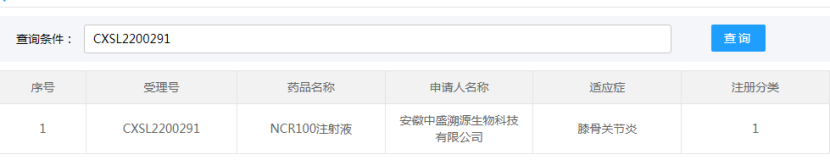安徽中盛溯源生物科技有限公司的“NCR100注射液”(誘導(dǎo)多能干細(xì)胞來源的間充質(zhì)干細(xì)胞)的藥物臨床試驗申請獲得默示許可(受理號:CXSL2200291),適應(yīng)證為:膝骨關(guān)節(jié)炎。