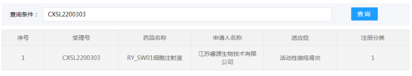 江蘇睿源生物技術(shù)有限公司的“RY_SW01細(xì)胞注射液”(間充質(zhì)干細(xì)胞藥物)的藥物臨床試驗申請獲得默示許可(受理號:CXSL2200303),適應(yīng)證為:活動性狼瘡腎炎。