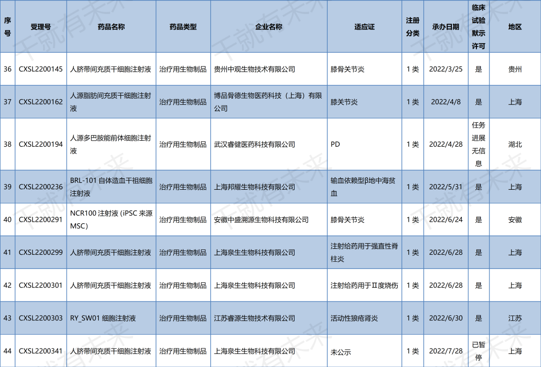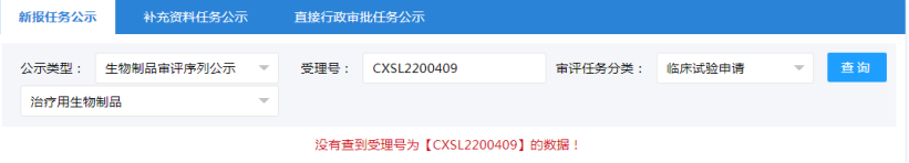 2022年7月28日上海泉生生物科技有限公司“人臍帶間充質(zhì)干細(xì)胞注射液”(受理號:CXSL2200341)無法查到IND評審信息。