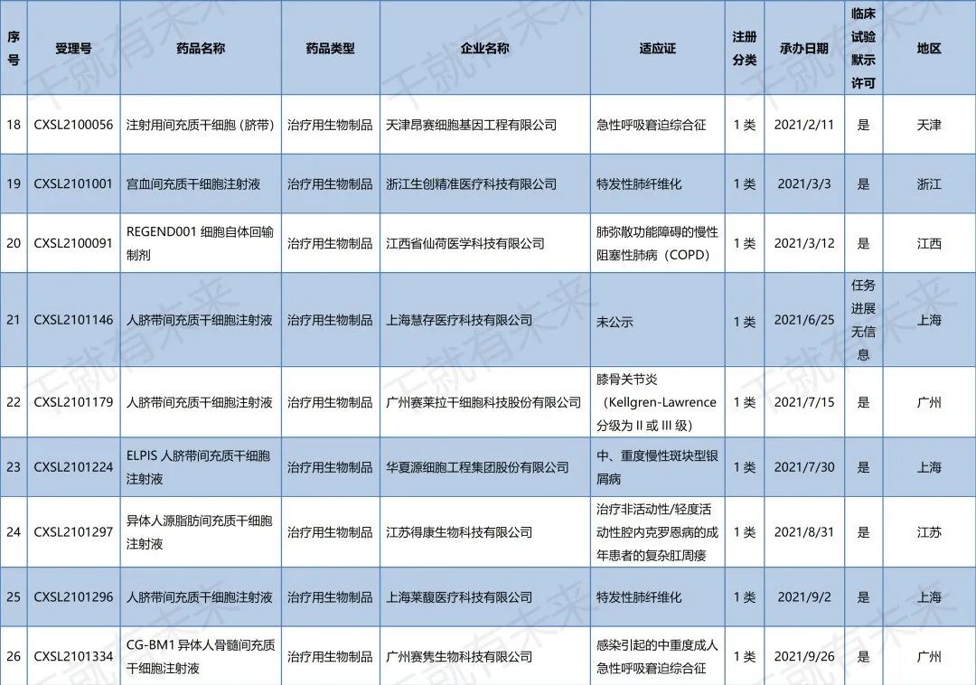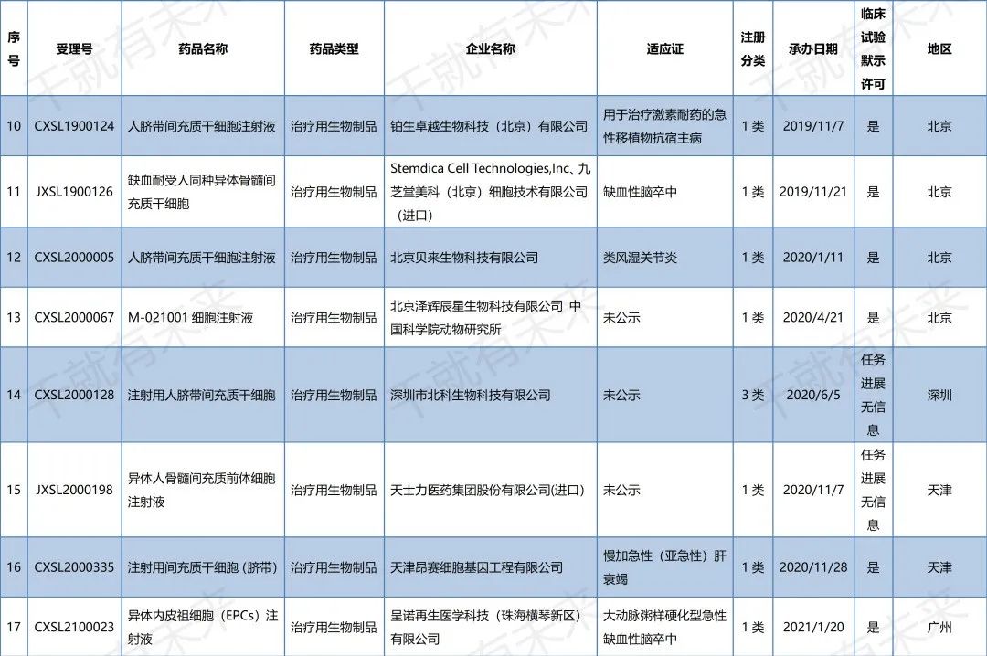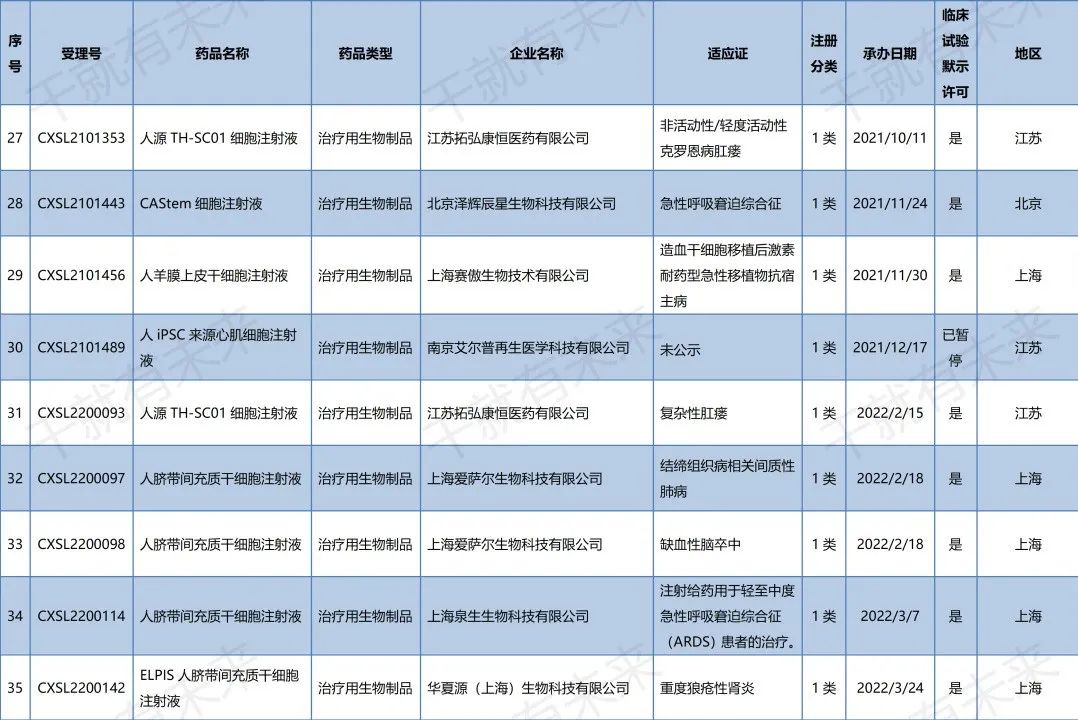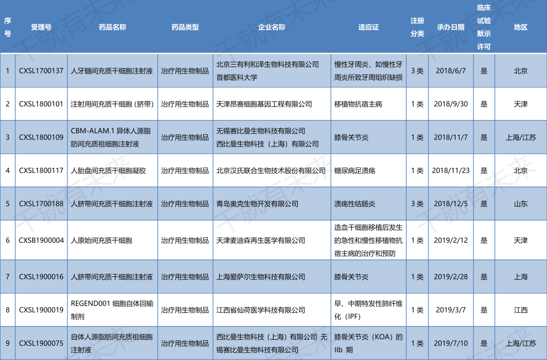 國內(nèi)干細(xì)胞藥物臨床試驗申請受理清單