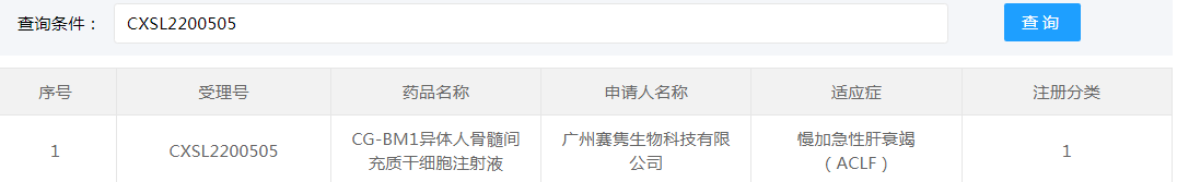廣州賽雋生物科技有限公司的“CG-BM1異體人骨髓間充質(zhì)干細(xì)胞注射液”(受理號:CXSL2200505)獲得新藥臨床試驗?zāi)驹S可,適應(yīng)證為:慢加急性肝衰竭(ACLF)。這是該干細(xì)胞注射液的第二種適應(yīng)證,此前已獲得默示許可用于注射給藥用于感染引起的中重度成人急性呼吸窘迫綜合征(ARDS)(受理號:CXSL2101334)的臨床試驗。