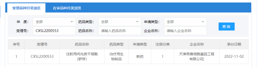 新增受理:2023年1月5日,武漢光谷中源藥業(yè)有限公司“VUM02注射液”(人臍帶源間充質(zhì)干細胞注射液)的藥物臨床試驗申請獲受理(受理號:CXSL2300006)。這是該干細胞注射液的第2種適應(yīng)證,此前失代償期肝硬化的臨床試驗申請已于2022年11月22日獲得受理(受理號:CXSL2200586),目前處于CDE審評階段。